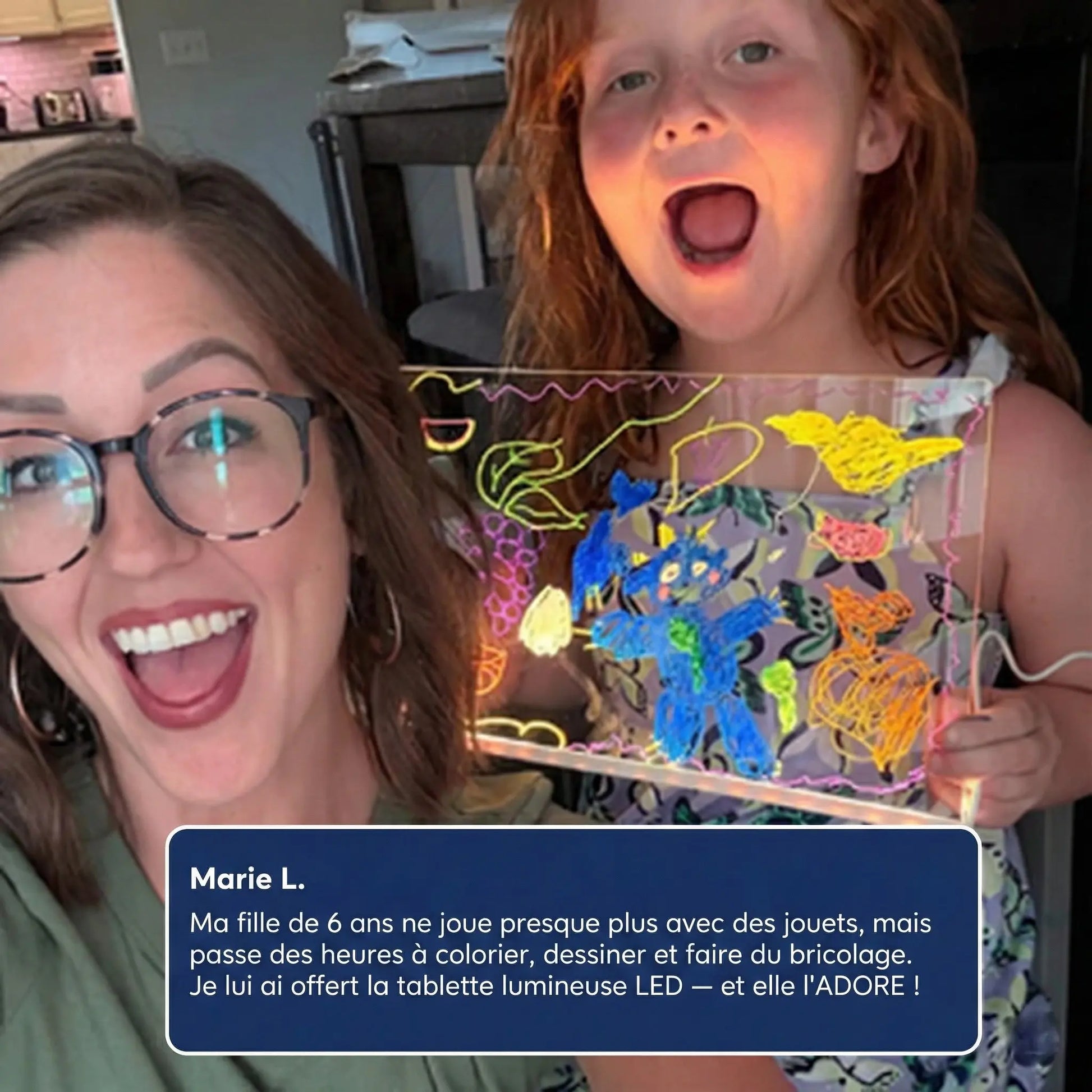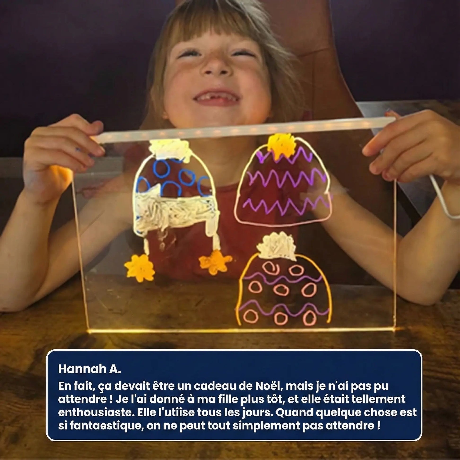 Marnama capte, occupe et émerveille. L’effet lumineux transforme n’importe quel dessin en un moment magique. C’est simple, propre et tellement satisfaisant que les enfants reviennent dessus encore et encore.